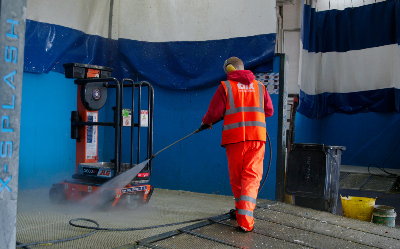 - Cleaning ladders, podiums, scissor lifts and other equipment using a pressure washer.