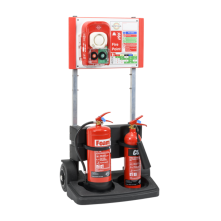 Mobile Fire Point Trolley c/w Bell Mobile fire safety stations which can carry extinguishers and sand-filled fire buckets.